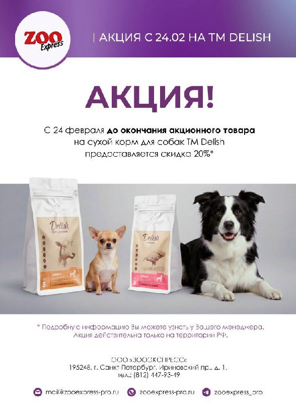 Сухой корм Delish для собак - 20%